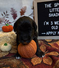 Toby & Autumn’s Spooky Litter arrived in the early hours of Wednesday, September 3, 2025. Starting at 5:20 am, Autumn worked through the morning and finished around 1:00 pm, delivering nine puppies, four boys and five girls, with cream and black-and-white coats. Their names were inspired by the magic of the fall season.