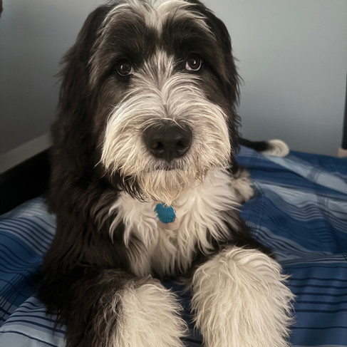 Charley is fully adjusted and coming into his own. He’s very smart and learns quickly, though he can be stubborn at times, as puppies are! He definitely has the herding mentality and can be vocal and mouthy, but it’s just his way of communicating. Charley is great with other dogs and people, and wonderful with kids. Recently, a 7-year-old visited, and he stayed glued to her side the whole time. We’ve been doing lots of training and walking, which he takes to really well. He’s also a bit of a jumper, but we’re working on that. Overall, he’s just a big, happy goofball.